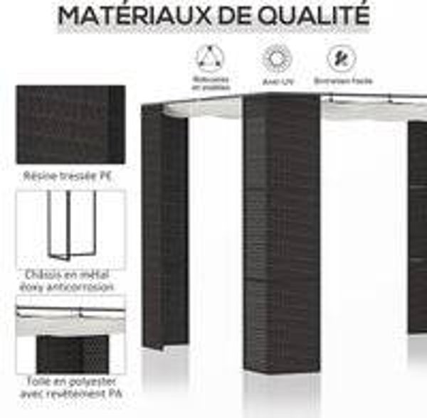 Outsunny® Pergola 3x3m Metalen Frame met Rotan PE, Zwart, Crème-wit